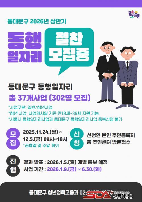 [½Åµ¿¾Æ¹æ¼Û µ¿´ë¹®±¸=À̽ŵ¿±âÀÚ] ¼­¿ï µ¿´ë¹®±¸´Â 11¿ù 24ÀϺÎÅÍ 12¿ù 5ÀϱîÁö ¡®2026³â »ó¹Ý±â µ¿´ë¹®±¸ µ¿ÇàÀÏÀÚ¸®»ç¾÷¡¯ Âü¿©ÀÚ 302¸íÀ» ¸ðÁýÇÑ´Ù.