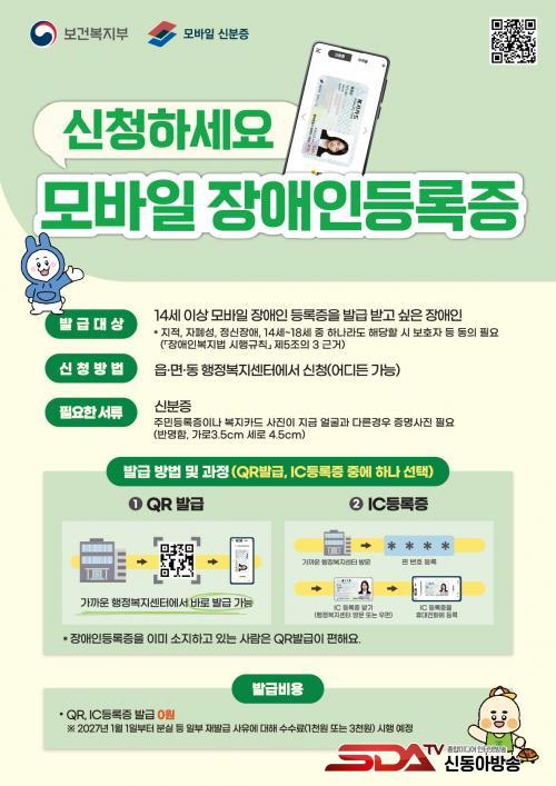 µ¿´ë¹®±¸, ¡®¸ð¹ÙÀÏ Àå¾ÖÀεî·ÏÁõ¡¯ 22ÀϺÎÅÍ ¹ß±Þ¡¦¡°º¹Áö¼­ºñ½º ÀÌ¿ë ´õ Æí¸®ÇØÁø´Ù¡±
