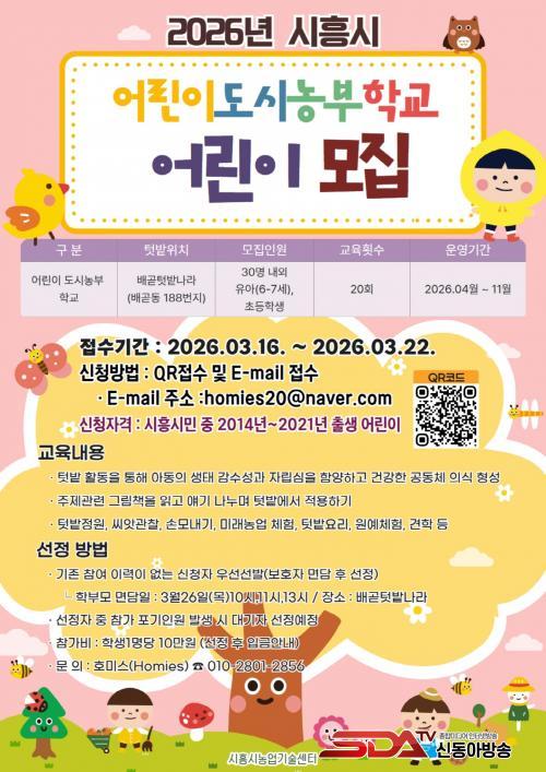 [½Åµ¿¾Æ¹æ¼Û ½ÃÈï½Ã=À̽ŵ¿±âÀÚ] ½ÃÈï½Ã´Â ¾î¸°À̵鿡°Ô »ý¸í³ó¾÷ ÀÚ¿øÀ» Ȱ¿ëÇÑ ÀÚ¿¬Ä£È­Àû ³ó¾÷ üÇè ±âȸ¸¦ Á¦°øÇØ À¯³â±â °Ç°­ÇÑ ¼ºÀåÀ» µ½±â À§ÇÑ ¡®2026³â ¾î¸°ÀÌ µµ½Ã³óºÎÇб³¡¯¸¦ 4¿ùºÎÅÍ 11¿ù±îÁö ¹è°ðÅԹ糪¶ó¿¡¼­ ¿î¿µÇÑ´Ù.