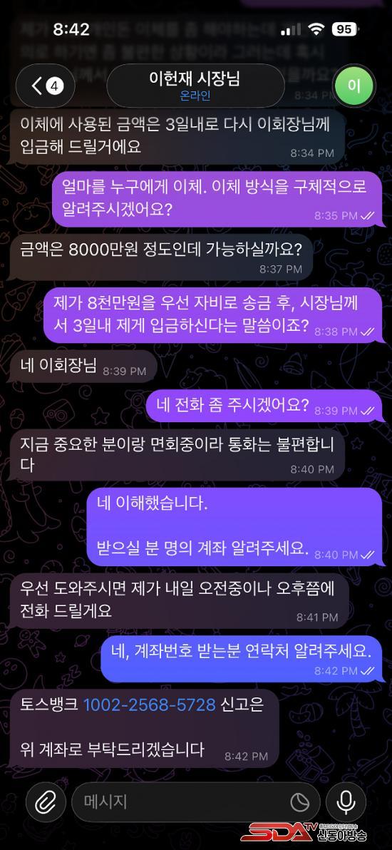 ÇØÄ¿´Â ¡°»ç¿ëµÈ ±Ý¾×Àº 3ÀÏ ³»·Î ´Ù½Ã ÀÔ±ÝÇØ ÁÖ°Ú´Ù¡±°í ¾È½É½ÃŲ µÚ, ½ÇÁ¦ ÀÔ±Ý Ã³·Î ¡®Å佺¹ðÅ© 1002-2568-5728 ½Å°íÀº¡¯À̶ó´Â ±¸Ã¼ÀûÀÎ °èÁ Á¤º¸¸¦ Á¦½ÃÇÏ¸ç ¼Û±ÝÀ» Á¾¿ëÇß´Ù.