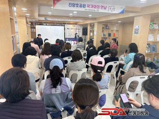 [½Åµ¿¾Æ¹æ¼Û °æ³²ÁøÁÖ=±è¸í¼ö±âÀÚ] ÁøÁֽô Áö³­ 28ÀÏ, Áø¾çÈ£°ø¿ø ¾ÆÃµ ºÏÄ«Æä¿¡¼­ °íÁ¤¼ø ±×¸²Ã¥ ÀÛ°¡¸¦ ÃÊÃ»ÇØ ¡®ÀÛ°¡¿ÍÀÇ ¸¸³²¡¯ ÇÁ·Î±×·¥À» ¿î¿µÇß´Ù.