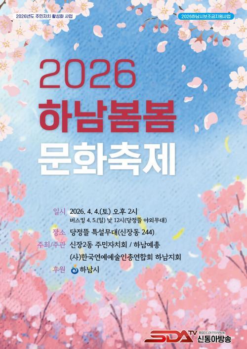 [½Åµ¿¾Æ¹æ¼Û Çϳ²½Ã=À̽ŵ¿±âÀÚ] ¡®2026 Çϳ² º½º½ ¹®È­ÃàÁ¦¡¯°¡ ¿À´Â 4¿ù 4ÀÏ ´çÁ¤¶ã ÀÏ¿ø¿¡¼­ ¿­¸°´Ù. À̹ø ÃàÁ¦´Â ½ÅÀå2µ¿ ÁÖ¹ÎÀÚġȸ¿Í (»ç)Çѱ¹¿¬¿¹¿¹¼úÀÎÃÑ¿¬ÇÕȸ Çϳ²Áöȸ°¡ °øµ¿ ÁÖÃÖ¡¤ÁÖ°üÇϰí Çϳ²½Ã°¡ ÈÄ¿øÇÑ´Ù.