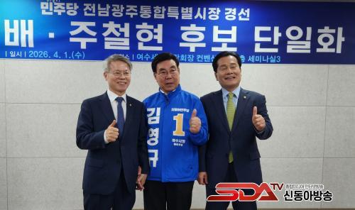 »çÁø=±è¿µ±Ô ¿©¼ö½ÃÀå ¿¹ºñÈĺ¸(°¡¿îµ¥)°¡ ¿©¼ö¿¢½ºÆ÷Àå¿¡¼­ ¿­¸° ¹ÎÁÖ´ç Àü³²±¤ÁÖÆ¯º°½ÃÀå Èĺ¸ ´ÜÀÏÈ­ ÇöÀå¿¡¼­ ÁÖöÇö(¿À¸¥ÂÊ) ¹ÎÇü¹è Èĺ¸¿Í ÇÔ²² ±â³ä»çÁøÀ» Âï°íÀÖ´Ù@±è¿µ±Ô Èĺ¸Ãø »ç¹«¼Ò