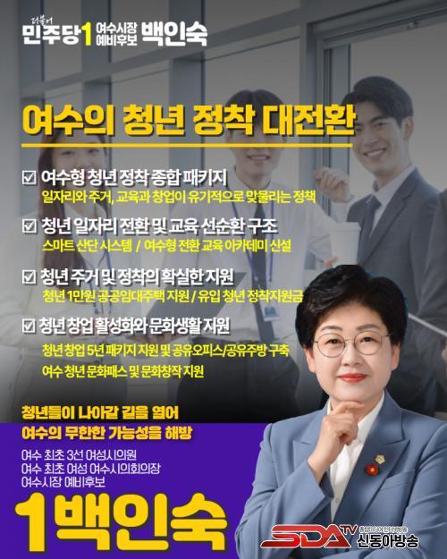 [½Åµ¿¾Æ¹æ¼ÛÀü³²¿©¼ö=±è±â³² ±âÀÚ] ¹éÀμ÷ ´õºÒ¾î¹ÎÁÖ´ç ¿©¼ö½ÃÀå ¿¹ºñÈ帴 "û³âÀÌ ºüÁ®³ª°¡¸é ¿©¼öÀÇ ¹Ì·¡µµ ÇÔ²² ºüÁ®³ª°£´Ù"¸ç ÁÖ°Å¡¤ÀÏÀÚ¸®¡¤Ã¢¾÷¡¤Á¤Âø¡¤¹®È­¸¦ ¹­Àº 5´ë û³âÁ¤Ã¥À» ¹ßÇ¥Çß´Ù.