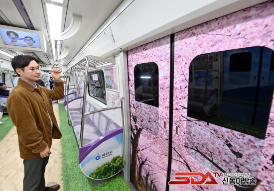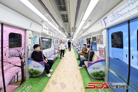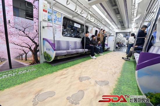 Çϳ²½Ã´Â º¢²É °³È­±â¸¦ ¸Â¾Æ ÁöÇÏö 5È£¼± Àüµ¿Â÷ ³»ºÎ¸¦ Çϳ²ÀÇ ¾Æ¸§´Ù¿î ¸í¼Ò·Î °¡µæ ä¿î ¡®Çϳ² dz°æ¿­Â÷¡¯¸¦ ¼±º¸ÀÌ¸ç ½Ã¹ÎµéÀÇ ÀÏ»ó¿¡ µû½ºÇÑ ¿Â±â¸¦ ´õÇϰí ÀÖ´Ù.