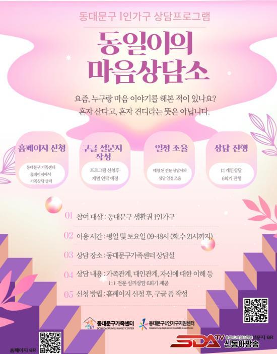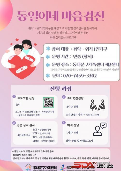 [½Åµ¿¾Æ¹æ¼Û µ¿´ë¹®±¸=À̽ŵ¿±âÀÚ] ¼­¿ï µ¿´ë¹®±¸´Â 1Àΰ¡±¸ÀÇ ½É¸®¡¤Á¤¼­Àû ¾ÈÁ¤°ú À§±â ¿¹¹æÀ» À§ÇØ »ó´ã°ú °ËÁøÀ» ¾Æ¿ì¸£´Â ÅëÇÕ Áö¿ø»ç¾÷À» ¿î¿µÇÑ´Ù°í ¹àÇû´Ù.