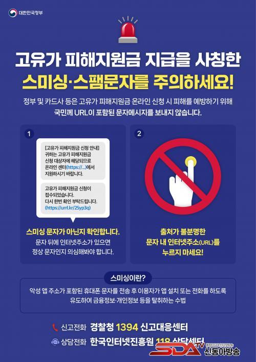 ½Ã¿¡ µû¸£¸é Á¤ºÎ ¹× Ä«µå»ç µî °ø½Ä ±â°üÀº Áö¿ø±Ý ½Åû°ú °ü·ÃÇØ ¸µÅ©(URL)°¡ Æ÷ÇÔµÈ ¹®ÀÚ¸¦ ¹ß¼ÛÇÏÁö ¾Ê´Â´Ù. ´Ù¸¸, 1Â÷ ½Åû·ü Á¦°í¸¦ À§ÇØ 1Â÷ Áö¿ø ´ë»óÀÚ¸¦ ´ë»óÀ¸·Î URLÀÌ Æ÷ÇÔµÇÁö ¾ÊÀº ¾È³» ¹®ÀÚ¸¦ ¹ß¼ÛÇÒ ¿¹Á¤ÀÌ´Ù.