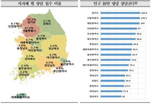 ¡à ¡®°æ±âµµ¡¯°¡ 14,329°Ç(30.3%)À¸·Î °¡Àå ¸¹¾Ò°í, ÀÌ¾î¼ ¡®¼¿ïƯº°½Ã¡¯°¡ 9,931°Ç(21.0%), ¡®ºÎ»ê±¤¿ª½Ã¡¯ 3,118°Ç(6.6%), ¡®ÀÎõ±¤¿ª½Ã¡¯ 2,871°Ç(6.1%), ¡®´ë±¸±¤¿ª½Ã¡¯ 2,217°Ç(4.7%) ¼øÀ¸·Î, Àα¸ 10¸¸ ¸í ´ç »ó´ã°Ç¼ö¸¦ »ìÆìº¸¸é ¡®°æ±âµµ¡¯°¡ 105.6°ÇÀ¸·Î °¡Àå ¸¹¾Ò°í, ¡®¼¿ïƯº°½Ã¡® 105.1°Ç, ¡®´ëÀü±¤¿ª½Ã¡® 104°Ç, ¡®ÀÎõ±¤¿ª½Ã¡® 97°Ç ¼øÀ̸ç, Àü¿ù ´ëºñ ¡®°æ»ó³²µµ¡¯(4.3%), ¡®´ë±¸±¤¿ª½Ã¡¯(1.6%), ¡®¿ï»ê±¤¿ª½Ã¡¯(1.5%)´Â Áõ°¡ÇßÀ¸¸ç, ¡®ÀÎõ±¤¿ª½Ã¡¯(-12.8%), ¡®Àü¶óºÏµµ¡¯(-10.9%) ¼øÀ¸·Î °¨¼ÒÀ²ÀÌ ³ô¾Ò°í, Àü³â µ¿¿ù ´ëºñ ¡®Àü¶óºÏµµ¡¯(-19.2%), ¡®¼¿ïƯº°½Ã¡¯(-14.8%), ¡®¿ï»ê±¤¿ª½Ã¡¯ (-14.7%), ¡®°æ»ó³²µµ¡¯(-12.9%), ¡®ºÎ»ê±¤¿ª½Ã¡¯(-11.6%) ¼øÀ¸·Î °¨¼ÒÀ²ÀÌ ³ô¾Ò´Ù.