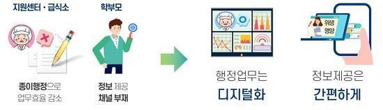 ¨é (µðÁöÅÐ ÇàÁ¤ Æ÷ÅÐ) ¡®¾î¸°À̱޽İü¸®Áö¿ø½Ã½ºÅÛ¡¯À» ±¸ÃàÇØ ¾î¸°ÀÌ ±Þ½Ä¼ÒÀÇ ¿µ¾ç¡¤À§»ý µî ¾÷¹«¸¦ Áö¿øÇÏ´Â ¾î¸°ÀÌ ±Þ½Ä °ü¸®Áö¿ø¼¾ÅÍ(Àü±¹ 236°³¼Ò, ¡¯22.11¿ù ±âÁØ)¿¡¼ ¾î¸°ÀÌ ±Þ½Ä¼Ò(Àü±¹ 3¸¸ 7,000°³¼Ò, ¡¯22.3¿ù ±âÁØ)ÀÇ ÇöÀå ¾÷¹«¸¦ º¸´Ù È¿À²ÀûÀ¸·Î Áö¿øÇÒ ¼ö ÀÖµµ·Ï µðÁöÅÐ ÇàÁ¤¼ºñ½º¸¦ Á¦°øÇϰí, Çкθð µî¿¡°Ô ¾î¸°ÀÌ ±Þ½Ä ¿µ¾ç¡¤¾ÈÀü °ü·Ã Á¤º¸¸¦ Á¦°øÇÑ´Ù.