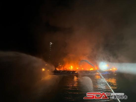 ÇØ°æÀº °æºñÇÔÁ¤ µµÂø ÈÄ ¾î¼± ¼±Ã¼ Àüü·Î ºÒ±æÀÌ È®»ê ÁßÀÎ °ÍÀ» È®ÀÎ ÈÄ ¼Òȼö¸¦ ÀÌ¿ëÇØ ¼ÒÈ ÀÛ¾÷À» ÁøÇàÇϰí ÀÖÁö¸¸ ºÒ±æÀÌ °Å¼¼ ¾î·Á¿òÀ» °Þ°í ÀÖ´Ù.