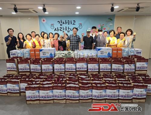 ÇöÀå¿¡¼´Â »ï°èÅÁ°ú ÇÔ²² ±¹¼ö ¼¼Æ®, »ýÇÊǰ, ¼ö°Ç, ¶± µîÀÌ ´ã±ä È¿(üø)²Ù·¯¹Ì¸¦ ¾î¸£½Åµé¿¡°Ô Á÷Á¢ Àü´ÞÇϸç Å« È£ÀÀÀ» ¾ò¾ú´Ù.