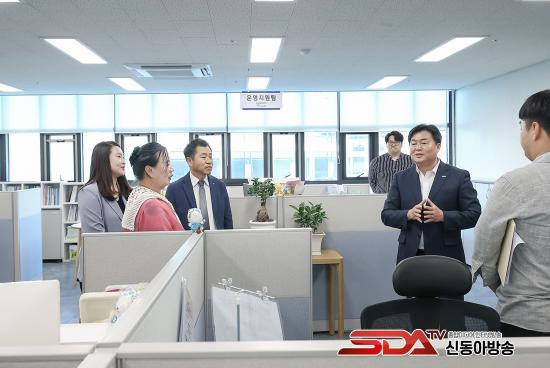 »õ·Î¿î Àå¼Ò¿¡ µÕÁö¸¦ ư ½ÃÈï½ÃÀÚ¿øºÀ»ç¼¾ÅÍ´Â ÃÑ 414.79§³ ±Ô¸ð·Î, ÀÚ¿øºÀ»çÀÚÀÇ »ç±â ÁøÀÛ°ú ¿ª·® °­È­¸¦ À§ÇØ 4Ãþ¿¡´Â ±³À°½Ç, ÇÁ·Î±×·¥½Ç, ÀÚ¿øºÀ»çÀÚ ÈÞ½Ä °ø°£À» ¸¶·ÃÇß°í 5Ãþ¿¡´Â »ç¹« °ø°£°ú ´Ù¸ñÀû½ÇÀ» ¹èÄ¡ÇØ ÀÚ¿øºÀ»çÀÚµéÀÇ ¿ª·® °­È­¿Í ±³·ù Ȱ¼ºÈ­¸¦ À§ÇÑ ¸ÂÃãÇü °ø°£À¸·Î ÀçÆíµÆ´Ù.