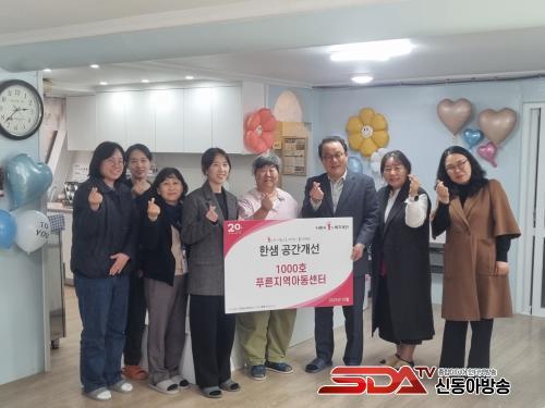 À̹ø Àü´Þ½ÄÀº ½ÃÈï½Ã1%º¹ÁöÀç´ÜÀÇ ÈÄ¿ø ¿¬°è¿Í ¢ßÇÑ»ùÀÇ ¡®Áö¿ª¾Æµ¿¼¾ÅÍ °ø°£°³¼±»ç¾÷¡¯ 1,000È£ Çà»ç·Î ¸¶·ÃµÆÀ¸¸ç, Ǫ¸¥Áö¿ª¾Æµ¿¼¾ÅͰ¡ 1,000¹øÂ° ÁÖÀΰøÀ¸·Î ¼±Á¤µÅ ÁøÇàµÆ´Ù. ÇÑ»ùÀº 2016³âºÎÅÍ ÈÄ¿ø±Ý°ú ¹°Ç°À» Áö¿ª¾Æµ¿¼¾ÅÍ¿¡ Áö¿øÇϸç, ¾Æµ¿ÀÇ ¾ÈÀüÇÏ°í µû¶æÇÑ È¯°æ Á¶¼º¿¡ ¾ÕÀå¼ ¿Ô´Ù. ƯÈ÷ Áö¿ª»çȸ ÀÏ¿øÀ¸·Î¼ »çȸÀû Ã¥ÀÓ°ú ¿ªÇÒÀ» ´ÙÇϱâ À§ÇØ ´Ù¾çÇÑ »çȸ°øÇå »ç¾÷À» È®´ëÇØ °¡°í ÀÖ´Ù.