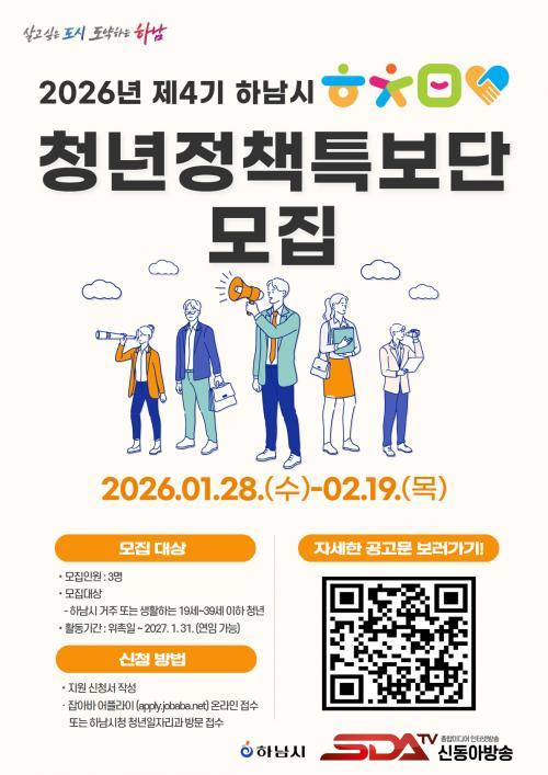 ¡®Á¦4±â û³âÁ¤Ã¥Æ¯º¸´Ü¡¯Àº ÃÑ 6¸í(û³â¸í¿¹½ÃÀå 1¸í, û³âÁ¤Ã¥Æ¯º¸´Ü 5¸í)À¸·Î ±¸¼ºµÇ¸ç, À̹ø ¸ðÁý¿¡¼­´Â û³âÁ¤Ã¥Æ¯º¸´Ü 3¸íÀ» ¼±¹ßÇÑ´Ù. ¼±¹ßÀº 1Â÷ ¼­·ù½É»ç¿Í 2Â÷ ´ë¸é ÀÎÅͺ並 °ÅÃÄ ÁøÇàµÇ¸ç, ƯÈ÷ À̹ø ¸ðÁý¿¡¼­´Â SNS ÄÜÅÙÃ÷ Á¦ÀÛ ¹× ¼Ò¼È¹Ìµð¾î Ȱµ¿ °æÇèÀÚ¿¡°Ô °¡Á¡À» ºÎ¿©ÇÑ´Ù. ÃÖÁ¾ ¼±¹ßÀÚ´Â 3¿ù Áß ¹ßÇ¥ ¿¹Á¤À̸ç, À§ÃË½Ä ÈÄ Ã»³âÁ¤Ã¥Æ¯º¸´ÜÀ¸·Î¼­ °ø½Ä Ȱµ¿À» ½ÃÀÛÇÏ°Ô µÈ´Ù.
