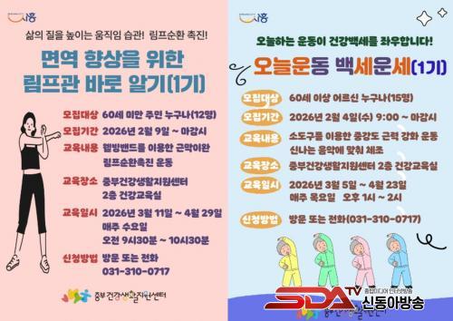 [½Åµ¿¾Æ¹æ¼Û ½ÃÈï½Ã=À̽ŵ¿±âÀÚ] ½ÃÈï½Ãº¸°Ç¼Ò Áߺΰǰ­»ýȰÁö¿ø¼¾ÅÍ¿¡¼­´Â ÀÏ»ó ¼Ó ¿òÁ÷ÀÓÀÌ ½×¿© ³»ÀÏÀÇ °Ç°­ÇÑ »îÀ¸·Î À̾îÁú ¼ö ÀÖµµ·Ï, Áö¿ªÁֹΠ´ë»ó ½ÅüȰµ¿ ÇÁ·Î±×·¥ ¡®¿À´Ã ¿îµ¿ ¹é¼¼ ¿î¼¼¡¯¿Í ¡®¸é¿ª Çâ»óÀ» À§ÇÑ ¸²ÇÁ°ü ¹Ù·Î ¾Ë±â¡¯¸¦ ¿î¿µÇÑ´Ù.