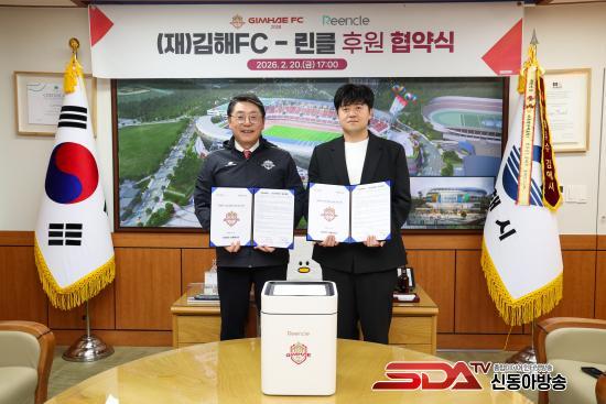 [½Åµ¿¾Æ¹æ¼Û °æ³²±èÇØ=³²±Ã¿µ±â±âÀÚ] Àç´Ü¹ýÀÎ ±èÇØFC(ÀÌÇÏ ¡®±èÇØFC¡¯)°¡ Áö¿ª ³» Çõ½Å ±â¾÷°úÀÇ ÆÄÆ®³Ê½ÊÀ» ÅëÇØ ±¸´Ü °æÀï·Â °­È­¿Í Áö¿ª »ó»ýÀ̶ó´Â µÎ ¸¶¸® Åä³¢ Àâ±â¿¡ ³ª¼¹´Ù. ±èÇØFC´Â 20ÀÏ, °¡Á¤¿ë À½½Ä¹°Ã³¸®±â Àü¹® ºê·£µåÀÎ ¡®¸°Å¬(Reencle)¡¯°ú °ø½Ä ÈÄ¿ø Çù¾àÀ» ü°áÇß´Ù°í ¹àÇû´Ù. À̹ø Çù¾àÀº ±èÇØFCÀÇ ÁßÀå±â ¹ßÀü 5´ë Àü·« Áß ÇϳªÀÎ ºê·£µå Çù·Â ÇÁ·ÎÁ§Æ®ÀÇ ÇÙ½É »ç¾÷, ¡®¾ÆÀ̾ð À¯´ÏƼ ³×Æ®¿öÅ©(Iron Unity Network)¡¯ ±¸ÃàÀÇ ÀÏȯÀ¸·Î ¼º»çµÇ¾ú´Ù.