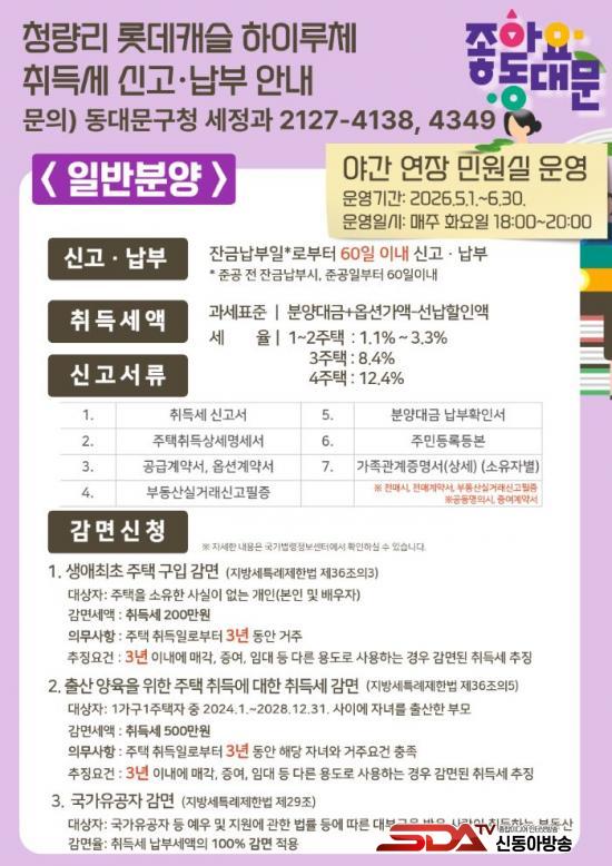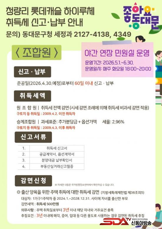 [½Åµ¿¾Æ¹æ¼Û µ¿´ë¹®±¸=À̽ŵ¿±âÀÚ] ¼­¿ï µ¿´ë¹®±¸´Â 14Àϰú 15ÀÏ ¾çÀϰ£, ÀÌ´Þ ¸» Áذø ¿¹Á¤ÀΠû·®¸® Á¦7±¸¿ª Àç°³¹ß ¾ÆÆÄÆ® ¡®·Ôµ¥Ä³½½ ÇÏÀÌ·çü¡¯ ÇöÀå¿¡¼­ ½Å±Ô ÀÔÁÖ¹ÎÀ» À§ÇÑ ¡®Ã£¾Æ°¡´Â ¸ÂÃãÇü ¼¼¹«»ó´ã¡¯À» ¼ºÈ²¸®¿¡ ¸¶¹«¸®Çß´Ù°í 16ÀÏ ¹àÇû´Ù.