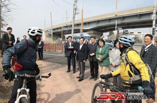 ÀÓº´Åà ½ÃÈï½ÃÀå(»çÁø ¿À¸¥ÂÊ)°ú ±èµ¿¿¬ °æ±âµµÁö»ç(»çÁø °¡¿îµ¥)°¡ Á¤¿Õµ¿ 2376¹øÁö ½ÃÈ­¹æÁ¶Á¦ ÀÚÀü°Å±æÀ» ã¾Æ ¿Ï¼ºµÈ ž籤 ½Ã¼³ ¼³Ä¡¿¡ °üÇÑ ¼³¸íÀ» µè°í ÀÖ´Ù.