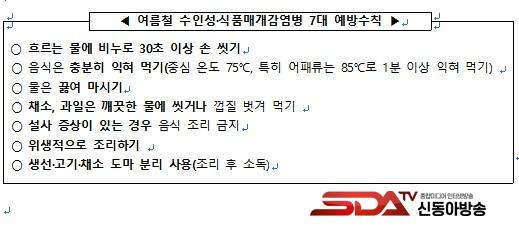 ¿©¸§Ã¶Àº ±â¿Â »ó½ÂÀ¸·Î º´¿ø¼º ¹Ì»ý¹°ÀÇ Áõ½ÄÀÌ È°¹ßÇØÁö°í ¾ß¿ÜȰµ¿ ¹× ÈÞ°¡°¡ Áõ°¡ÇÏ´Â ½Ã±â·Î, Áý´Ü ¹ß»ý À§ÇèÀÌ ³ô¾ÆÁö´Â ¸¸Å­ °³ÀÎÀ§»ý ¼öÄ¢ Áؼö°¡ Áß¿äÇÏ´Ù.
