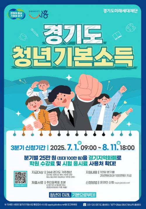 [½Åµ¿¾Æ¹æ¼Û ½ÃÈï½Ã=À̽ŵ¿±âÀÚ] ½ÃÈï½Ã´Â 7¿ù 1ÀϺÎÅÍ 8¿ù 11ÀϱîÁö ¡®2025³â 3ºÐ±â û³â±âº»¼Òµæ¡¯ Áö±Þ ½ÅûÀ» ¹Þ´Â´Ù. û³â±âº»¼ÒµæÀº 24¼¼ û³â¿¡°Ô ºÐ±âº° 25¸¸ ¿ø¾¿ 4ºÐ±â¿¡ °ÉÃÄ ÃÖ´ë 100¸¸ ¿øÀ» Áö¿ªÈ­Æó·Î Áö±ÞÇϴ û³â Áö¿ø Á¤Ã¥ÀÌ´Ù. À̹ø 3ºÐ±â ½Åû¡¦
