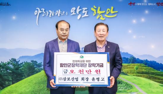 [½Åµ¿¾Æ¹æ¼Û °æ³²ÇÔ¾È=À̽ŵ¿±âÀÚ] ¢ß»ïº¸»ê¾÷Àº 17ÀÏ ¿ÀÈÄ, ÇԾȱºÃ»À» ¹æ¹®ÇØ Áö¿ªÀÎÀçÀ°¼ºÀ» À§ÇÑ ÀåÇбâ±Ý 5000¸¸ ¿øÀ» ±º ÀåÇÐÀç´Ü¿¡ ±âŹÇß´Ù. À̳¯ ±âŹ½Ä¿¡´Â Á¤Ã¤±Ù »ïº¸»ê¾÷ ºÎȸÀå°ú ±èÈñÁ¤ »çÀåÀÌ Âü¼®ÇØ ¡°±º¹Îµé¿¡°Ô ¹ÞÀº °ü½É°ú ¼º¿ø¿¡ º¸´äÇϰíÀÚ ¡¦