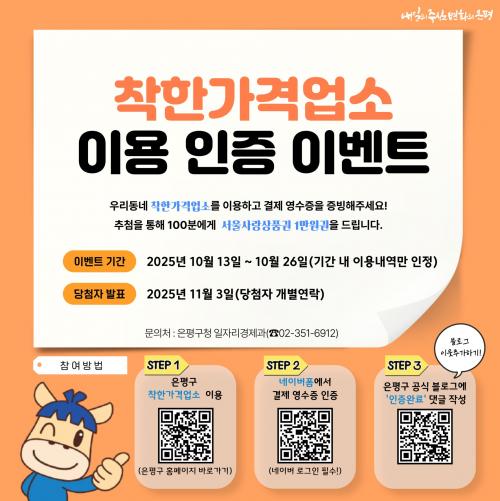 ÀºÆò±¸, ÂøÇѰ¡°Ý¾÷¼Ò ÀÌ¿ë ÀÎÁõ À̺¥Æ® °³ÃÖ