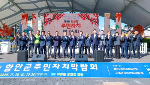 [½Åµ¿¾Æ¹æ¼Û °æ³²ÇÔ¾È=À̽ŵ¿±âÀÚ] ÇԾȱºÀº Áö³­ 15ÀÏ °¡¾ßÀ¾ ¾Æ¶ó±æ °ø¿¬Àå¿¡¼­ ¡®Á¦4ȸ ÇԾȱº ÁÖ¹ÎÀÚÄ¡ ¹Ú¶÷ȸ¡¯¸¦ ¿­¾ú´Ù°í ¹àÇû´Ù. Çà»ç¿¡´Â 10°³ À¾¸é ÁÖ¹ÎÀÚÄ¡À§¿ø°ú ±º¹Î µî 400¿© ¸íÀÌ ÇÔ²²Çß´Ù. À̹ø ¹Ú¶÷ȸ´Â 10°³ À¾¸é ÁÖ¹ÎÀÚġȸ°¡ ÇÑ ÇØ µ¿¾È ÃßÁøÇÑ¡¦