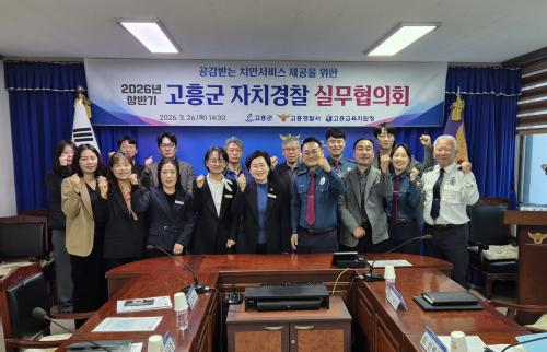 [½Åµ¿¾Æ¹æ¼Û Àü³²°íÈï=¹Ú±¤¿Á±âÀÚ] °íÈﱺ(±º¼ö °ø¿µ¹Î)Àº Áö³­ 26ÀÏ °íÈï°æÂû¼­ ¼ÒȸÀǽǿ¡¼­ Áö¹æÇàÁ¤°ú Ä¡¾È ÇàÁ¤ÀÇ À¯±âÀû ¿¬°è¸¦ À§ÇÑ ¡®2026³â »ó¹Ý±â °íÈﱺ ÀÚÄ¡°æÂû½Ç¹«ÇùÀÇȸ¡¯¸¦ °³ÃÖÇß´Ù°í ¹àÇû´Ù. À̹ø ÇùÀÇȸ¿¡´Â °íÈﱺ°ú °íÈï°æÂû¼­, °íÈï±³À°Áö¿øÃ»¡¦