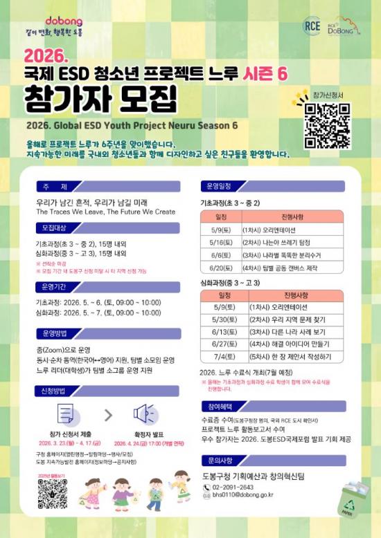 [½Åµ¿¾Æ¹æ¼Û µµºÀ±¸=À̽ŵ¿±âÀÚ] ¼­¿ï µµºÀ±¸°¡ ¡®±¹Á¦ ESD û¼Ò³â ÇÁ·ÎÁ§Æ® ´À·ç ½ÃÁð 6¡¯¸¦ ÁøÇàÇÑ´Ù. ÇÁ·ÎÁ§Æ® ´À·ç´Â Àü ¼¼°è Áö¼Ó°¡´É¹ßÀü±³À° °ÅÁ¡µµ½Ã(RCE)¿Í û¼Ò³âµéÀÌ °ü½ÉÀ» °¡Áö°í Âü¿©ÇÏ´Â ±Û·Î¹ú Çù·Â ÇÁ·ÎÁ§Æ®´Ù. ÁÜ(Zoom) ±â¹ÝÀ¸·Î ¿î¿µµÇ¸ç, µ¶Ã¢Àû¡¦