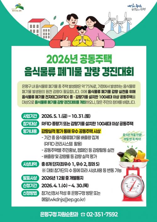 [½Åµ¿¾Æ¹æ¼Û ÀºÆò±¸=À̽ŵ¿±âÀÚ] ¼­¿ï ÀºÆò±¸´Â RFID(ÀüÀÚÅÂ±× ±â¹Ý ÀνĽýºÅÛ) Á¾·®±â ¶Ç´Â °¨·®±â¸¦ ¼³Ä¡ÇÑ 1¹é ¼¼´ë ÀÌ»óÀÇ °øµ¿ÁÖÅÃÀ» ´ë»óÀ¸·Î À½½Ä¹°·ù Æó±â¹° °¨·® °æÁø´ëȸ¸¦ ½Ç½ÃÇÑ´Ù°í ¹àÇû´Ù. À̹ø ´ëȸ´Â ±¸ Àüü À½½Ä¹°·ù Æó±â¹° ¹ß»ý·®ÀÇ ¾à 75%°¡ °¡¡¦