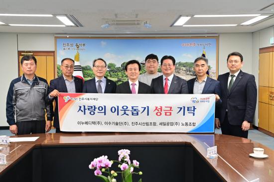 [½Åµ¿¾Æ¹æ¼Û °æ³²ÁøÁÖ=³²±Ã¿µ±â±âÀÚ] ÁøÁֽú¹ÁöÀç´ÜÀº 6ÀÏ ÁøÁÖ½Ãû ±â¾÷ÀÎÀÇ ¹æ¿¡¼­ Áö¿ª»çȸ ±â¾÷¡¤±â°ü¡¤´ÜüÀÇ ¾î·Á¿î ÀÌ¿ôµ½±â ¼º±Ý ±âʽÄÀ» °¡Á³´Ù. À̹ø ±âŹ½Ä¿¡¼­ ÀÌ´©¸ÞµðÅØ¢ß(´ëÇ¥ ÀÌÀοì)¿¡¼­ ¼º±Ý 2,000¸¸ ¿ø, À̼ö±â¼ú´Ü¢ß(´ëÇ¥ Ȳ±¹ÁÖ)¿¡¼­ ¼º±Ý 2,¡¦