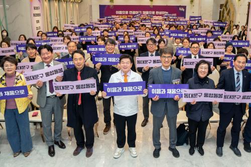 [½Åµ¿¾Æ¹æ¼Û µ¿´ë¹®±¸=À̽ŵ¿±âÀÚ] ¼­¿ï µ¿´ë¹®±¸´Â 15°³ µ¿ Áֹμ¾ÅÍ Á÷¿ø ÃÑ 133¸íÀ» ´ë»óÀ¸·Î ã¾Æ°¡´Â ÅëÇÕµ¹º½ ±³À°À» ½Ç½ÃÇß´Ù. À̹ø ±³À°Àº 3¿ù 27ÀϺÎÅÍ º»°Ý ½ÃÇàµÈ ÅëÇÕµ¹º½ »ç¾÷ÀÇ ¾ÈÁ¤ÀûÀÎ Á¤Âø°ú Ȱ¼ºÈ­¸¦ À§ÇØ ¸¶·ÃµÆ´Ù. ÅëÇÕµ¹º½Àº ¾î¸£½ÅÀ̳ª Àå¾ÖÀΡ¦