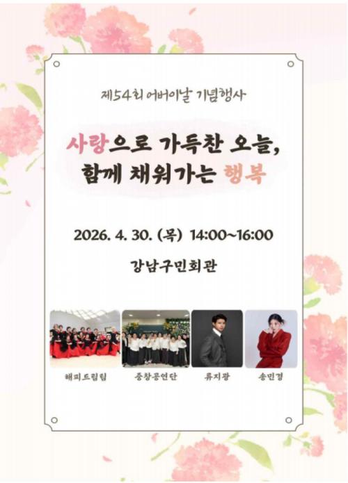 [½Åµ¿¾Æ¹æ¼Û °­³²±¸=À̽ŵ¿±âÀÚ] ²ÞÀÌ ¸ðÀÌ´Â µµ½Ã, ¹Ì·¡¸¦ ±×¸®´Â °­³²±¸°¡ Á¦54ȸ ¾î¹öÀ̳¯À» ¸Â¾Æ 4¿ù 30ÀÏ ¿ÀÈÄ 2½ÃºÎÅÍ 4½Ã±îÁö °­³²±¸¹Îȸ°ü¿¡¼­ ±â³äÇà»ç¸¦ °³ÃÖÇϰí, 5¿ù 8ÀÏ¿¡´Â 7°³ ³ëÀκ¹Áö°ü¿¡¼­ ´Ùä·Î¿î Çà»ç¸¦ À̾´Ù. ±¸´Â À̹ø ¾î¹öÀ̳¯ Çà»ç¸¦ Å롦